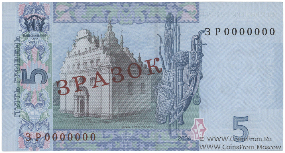 5 гривен 2004 г. ОБРАЗЕЦ (ЗРАЗОК)