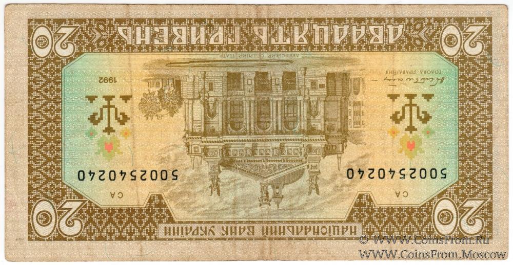 БРАК: реверс к аверсу перевернут на 180 градусов. Выпуск 1992 г. Подпись - Гетьман. Национальный банк Украины (Національний банк України).