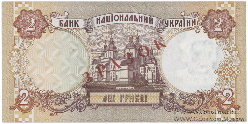 2 гривны 1995 г. ОБРАЗЕЦ (ЗРАЗОК)