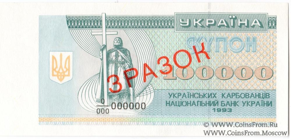 100.000 карбованцев 1993 г. ОБРАЗЕЦ