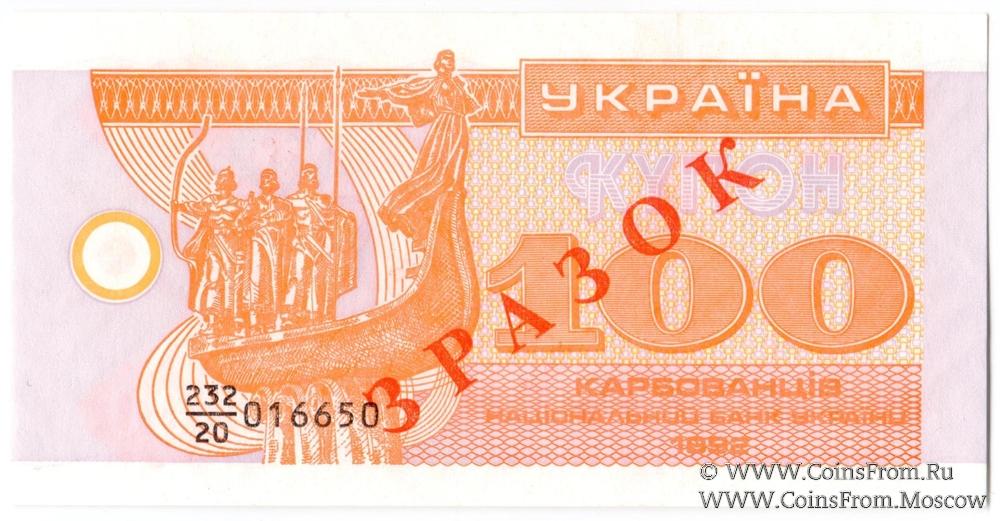 100 карбованцев 1992 г. ОБРАЗЕЦ