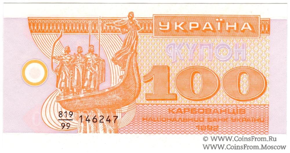 100 карбованцев 1992 г. "Замещёнка"