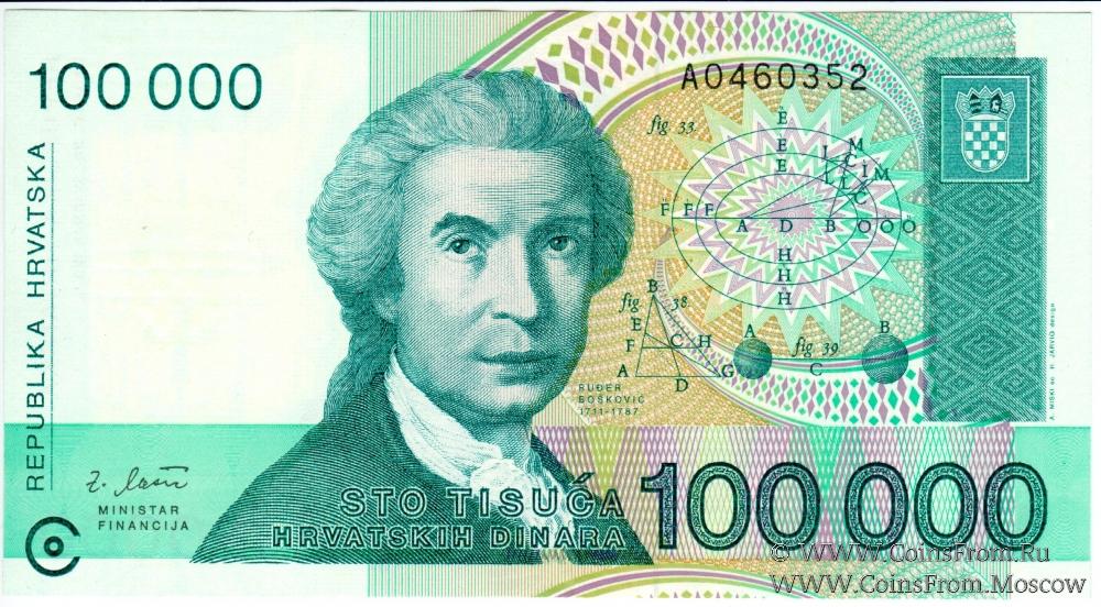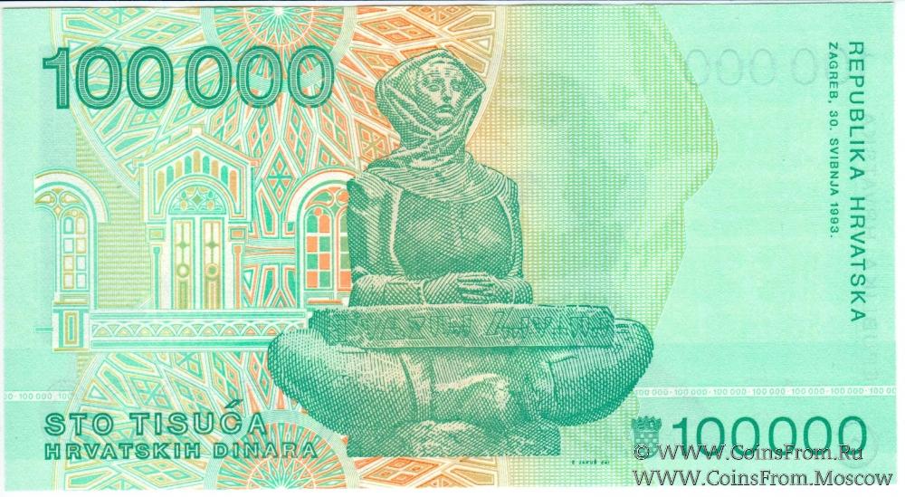 100.000 хорватских динаров 1993 г.