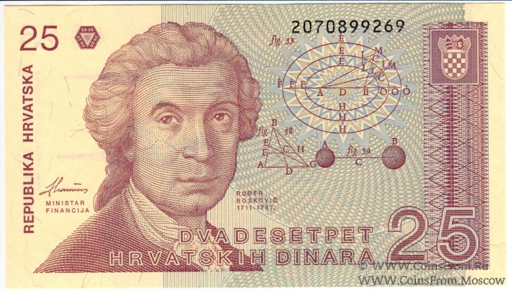 Выпуск 1991-1993 гг. в хорватских динарах.