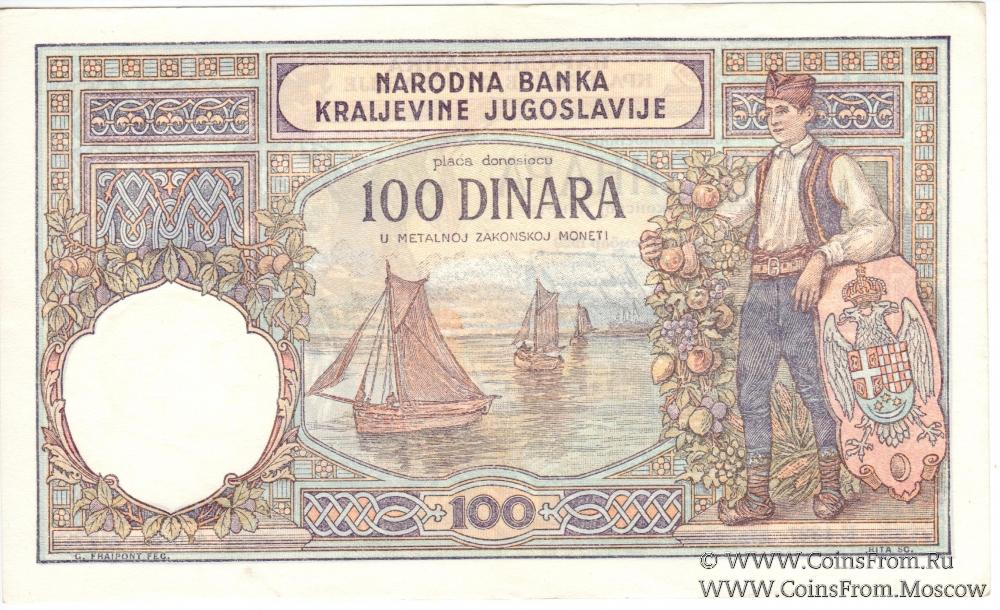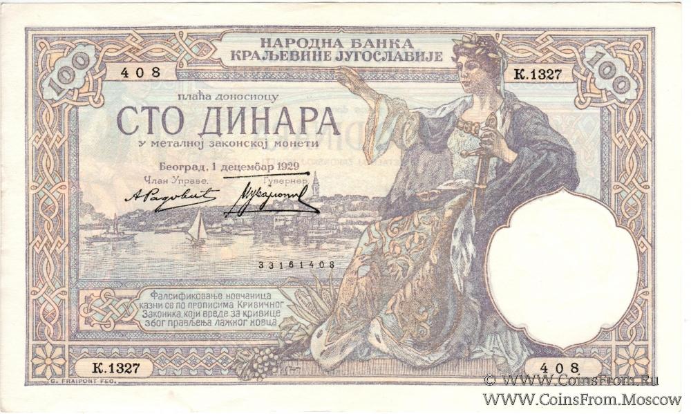 Выпуск 1929 г. Народный банк Королевства Югославия (Народна Банка Краљевина Југославије). Водяной знак - Александр.
