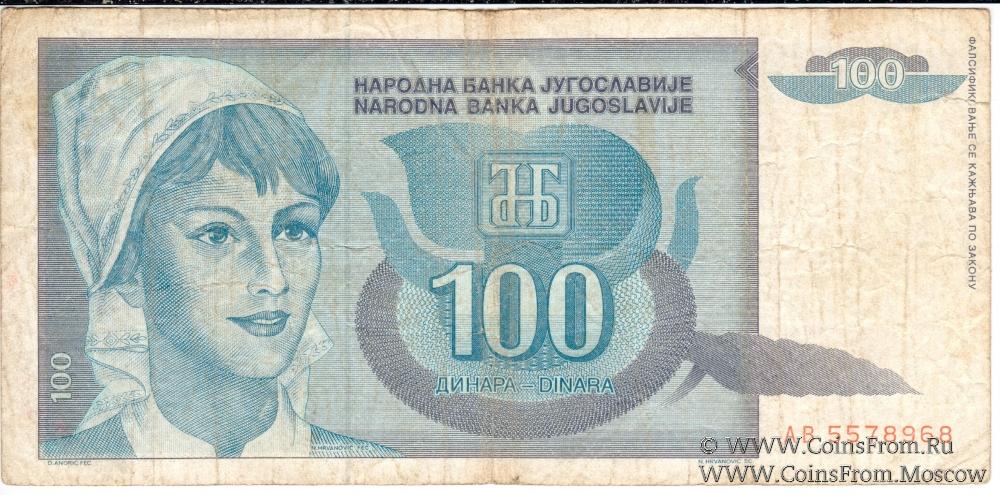 100 динар 1992 г.