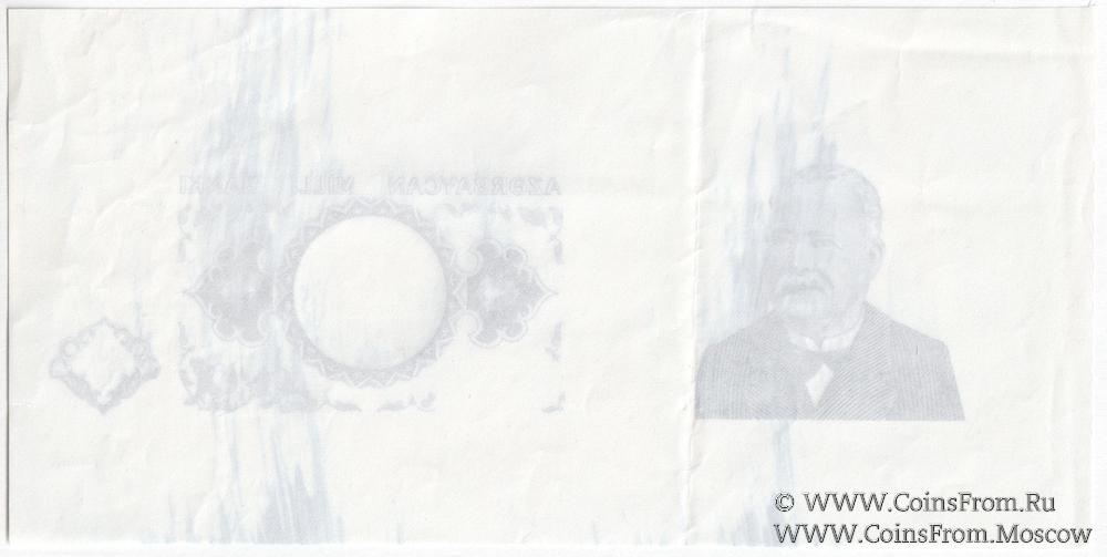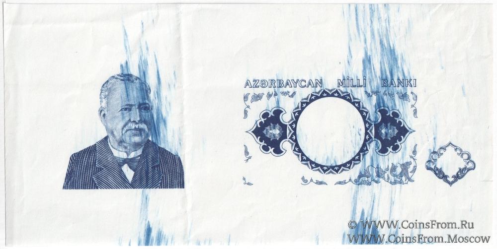 Выпуски 1992-2001 гг. ПРОБА печати: часть реверса в синем цвете. Национальный Банк Азербайджана (Azərbaycan Milli Bankı).