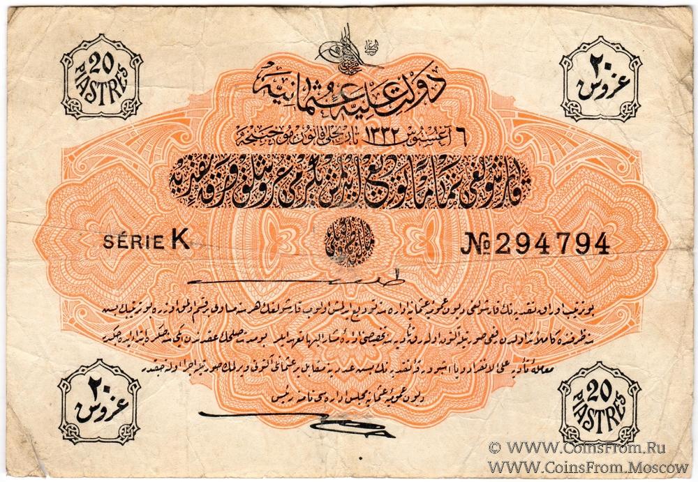 4-я эмиссия банкнот. 06.08.1332 (19.08.1916). Султан Мехмед V (V. Mehmed Reşad).