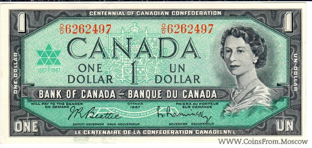 Памятный выпуск 1967 г. "Сто лет Канадской конфедерации". С номером. Банк Канады (Bank of Canada).