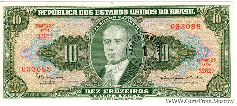 Выпуск 1966-1967 гг. (в новых крузейро / Cruzeiro Novo). Серии 3152-4055. Банкноты предыдущих выпусков с надпечаткой номинала в новой валюте.