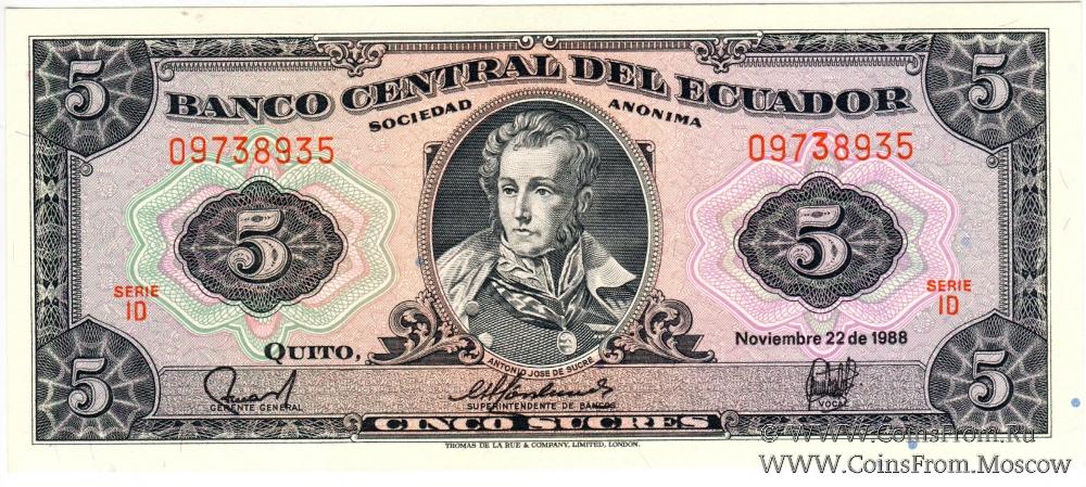 Выпуск 1988 г. Центральный банк Эквадора (Banco Central del Ecuador).