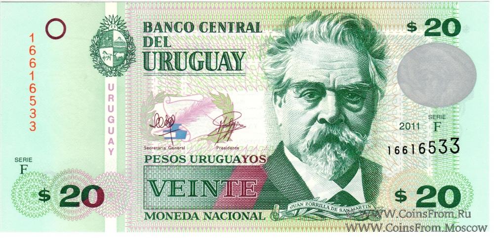Выпуск 2001 г. Серия F. Центральный банк Уругвая (Banco Central del Uruguay). Типография - Thomas De La Rue (TDLR).