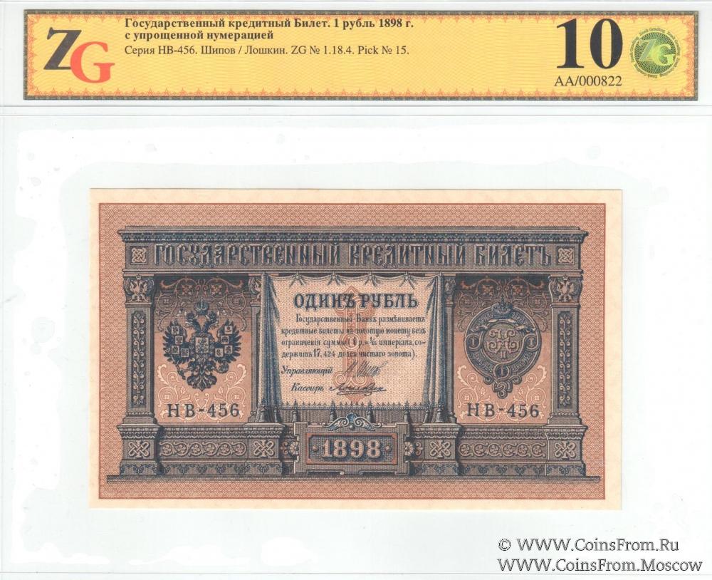 Государственные кредитные билеты образца 1898 выпускались в обращение с 1898 году согласно указу № 14504 от 29 августа 1897 года.