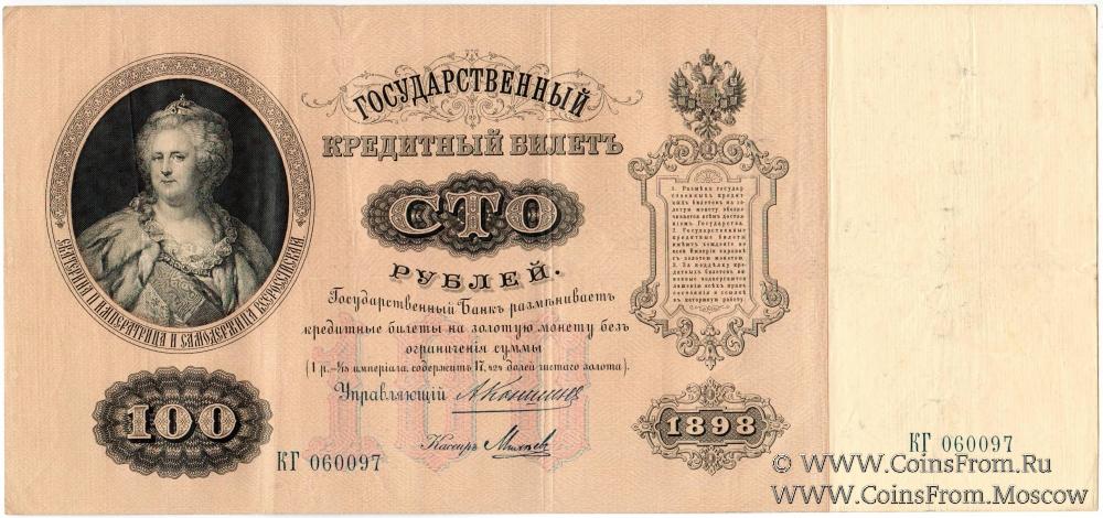 Государственные кредитные билеты Российской Империи выпусков 1898, 1905, 1909, 1910 и 1912 гг. за подписями Управляющих Плеске, Тимашева, Коншина, Шипова. Находились в обращении до 1922 г.
