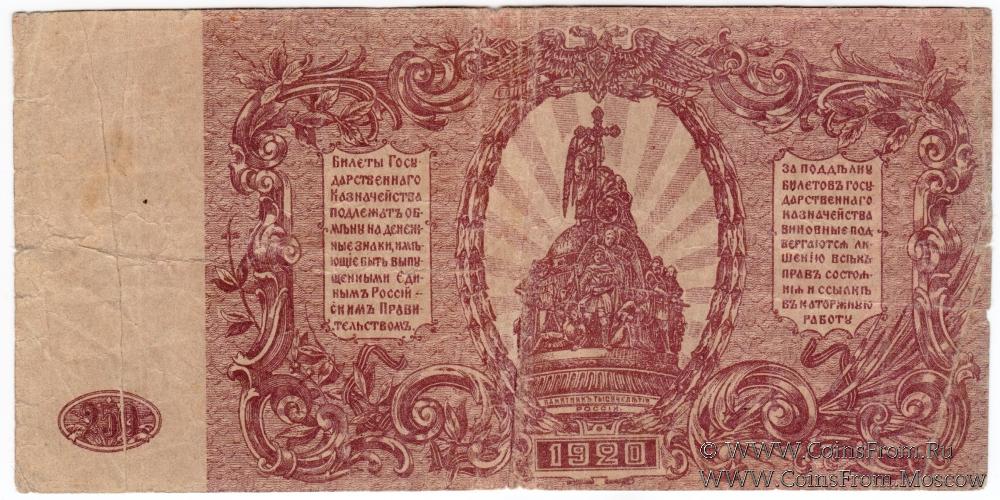 Билет Государственного Казначейства 1920 г. Водяной знак - "грибы".