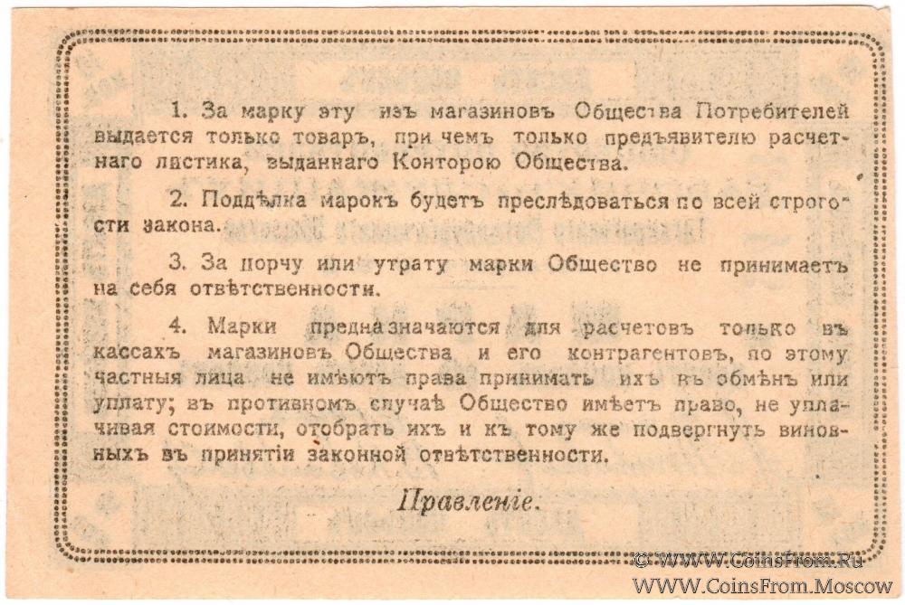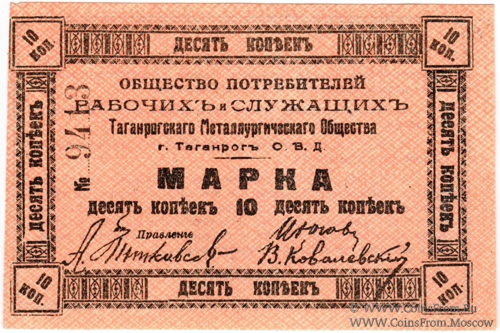 Марка без даты. Бланк с номером. Общество Потребителей рабочих и служащих. Таганрогское Металлургическое общество.