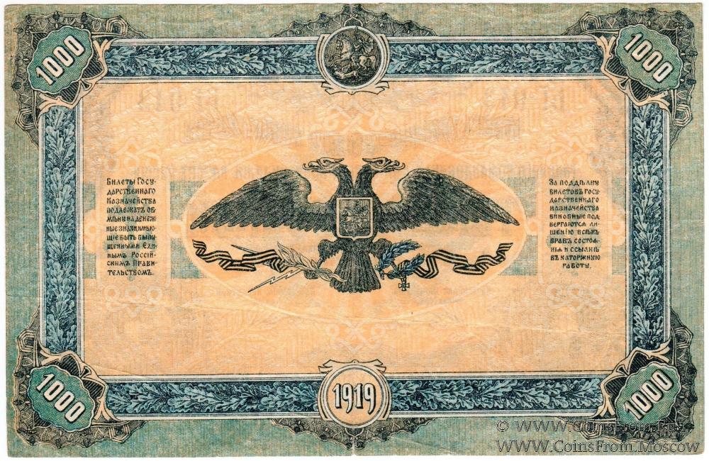 Билет Государственного Казначейства 1919 г. Водяной знак - мозайка. Литера - Б. Преобладает зеленый оттенок. Отсутствует оранжевый фон (аверс).