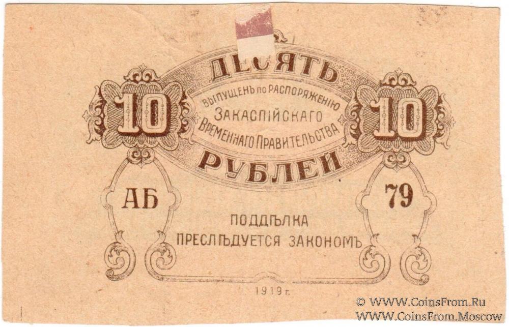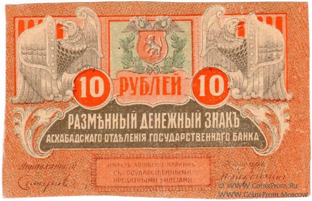 Разменный Денежный Знак 1919 г. БРАК: отсутствует фон на реверсе. Ашхабадское отделение Государственного Банка.