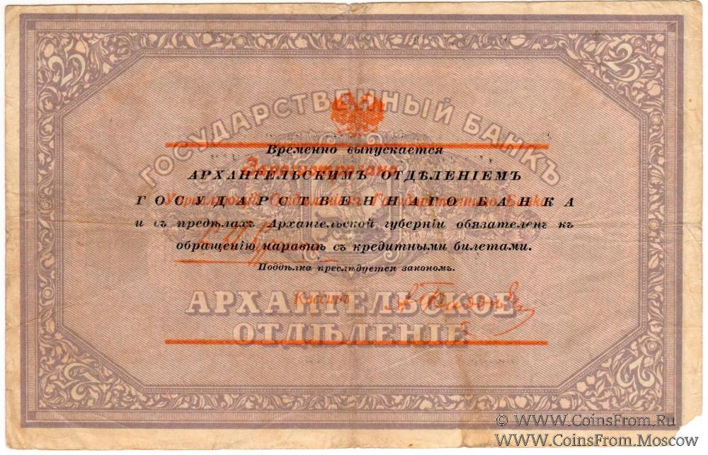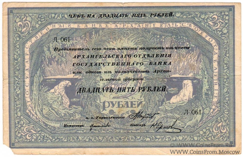 Чек 1918 г. (без даты). Серия - одна литера. Штамп "Зарегистрировано..." на реверсе. Архангельское Отделение Государственного Банка.