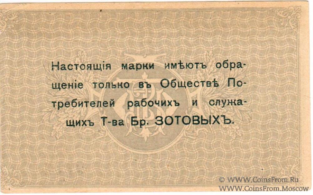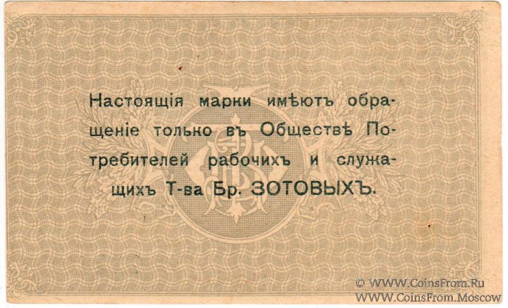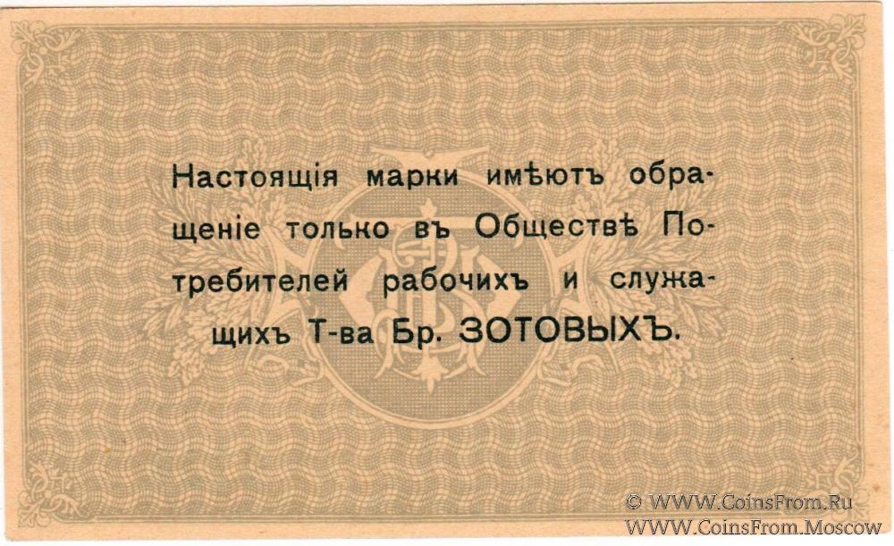 Общество потребителей рабочих и служащих т-ва Братьев Зотовых. Комплект марок - 3 номинала: 1 копейка (№ 7151); 10 копеек (№ 7331); 20 копеек (№ 9751).