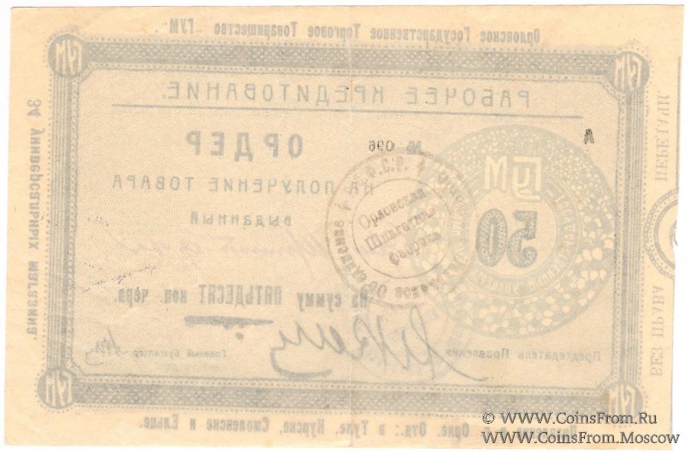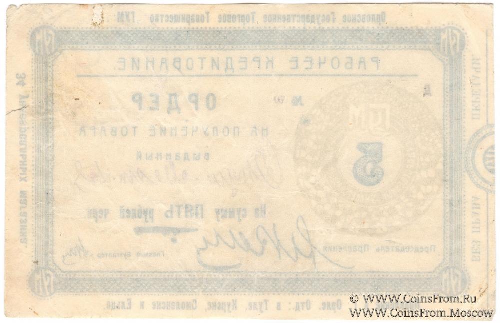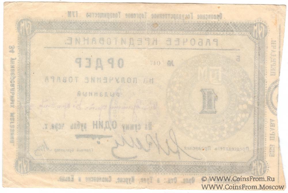 Ордер на получение товара (без права передачи) без даты (1923 г.). В червонных копейках и рублях.
