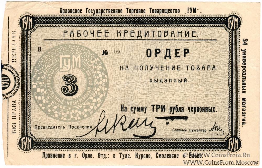 3 рубля б/д (1923) - слово "червонных" без сокращения (В № 09);