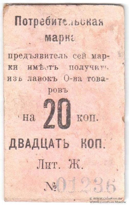 Потребительская марка (на картоне) без даты (1918 г.). Без печати. Правление Второго Нижне-Тагильского Потребительского общества.