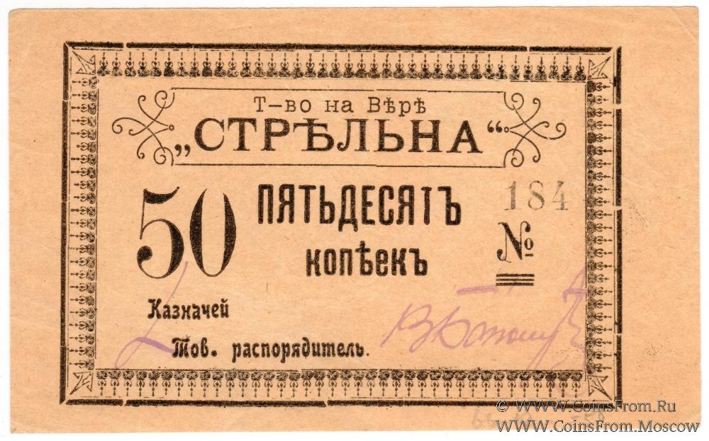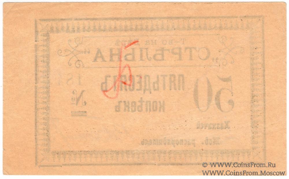 50 копеек 1919 г. (№ 184; серо-желтая бумага; с подписью распорядителя);