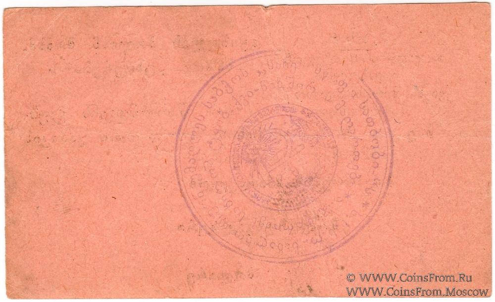 На аверсе: текст на грузинском языке, без серии, номер рукописный 4-значный, подписи факсимиле (управляющий, главбух, кассир). Печать на реверсе.