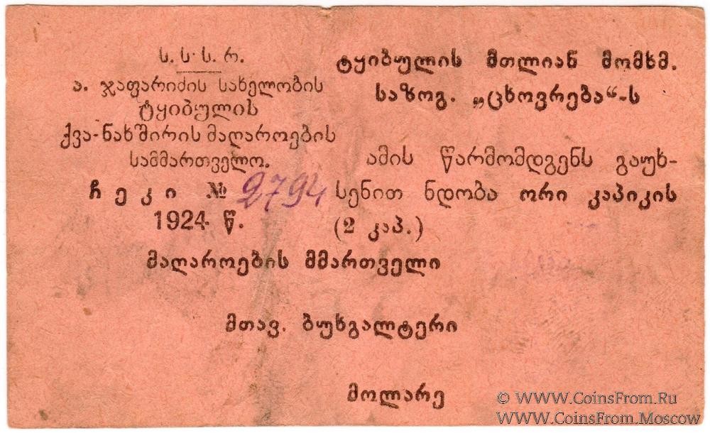 СССР управление каменноугольными шахтами им. Алеши Джапаридзе. Ткибульское горняцкое общество потребителей "Цховреба" ("Жизнь").