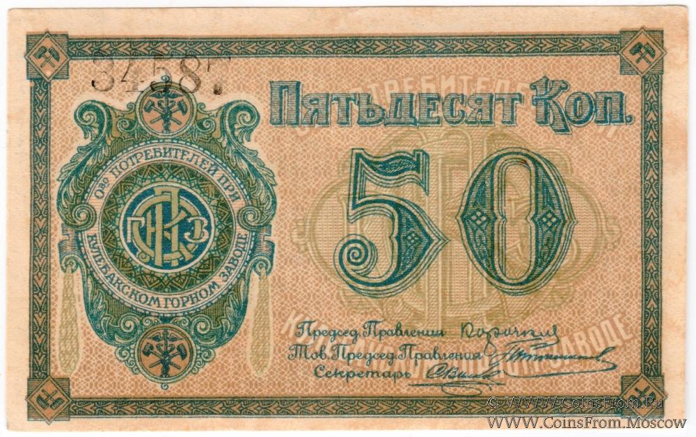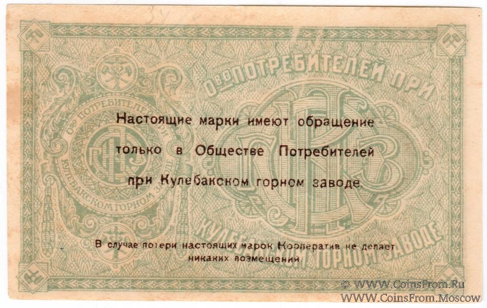 Марка без даты. Номер 5-значный. Общество потребителей при Кулебакском горном заводе.
