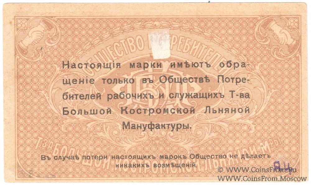 Марка. Общество потребителей рабочих и служащих т-ва Большой Костромской льняной мануфактуры.