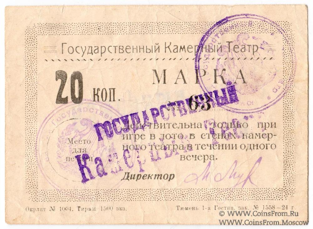 Марка без даты (1924 г.). На белой бумаге. Тюменский Государственный Камерный Театр.