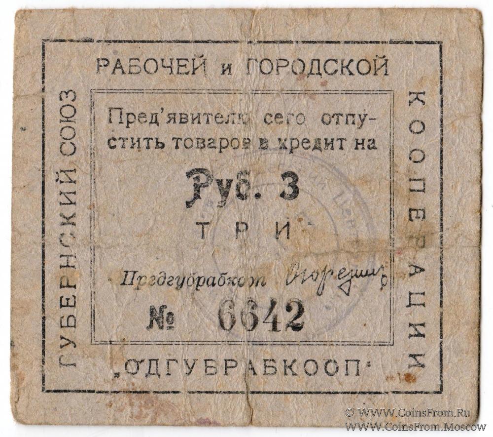 Печать на аверсе "Одесский Ц.Р.К.". Одесский Губернский Союз Рабочей и Городской Кооперации "ОДГУБРАБКООП"