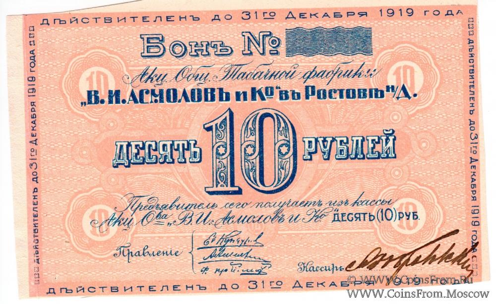 Бон. Бланк. Акционерное Общество Табачной фабрики "В.И. Асмолов и Ко".