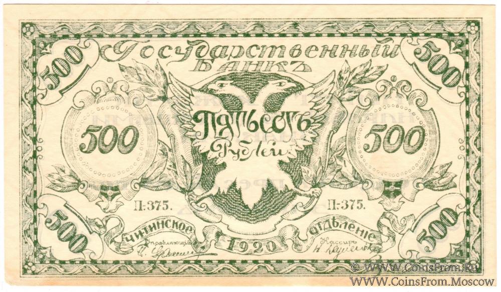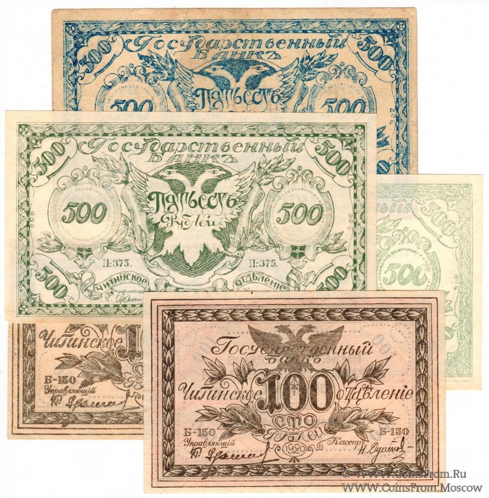 500 рублей 1920 г. - 3 экземпляра (А-255 - синий; С-485 - светло-зеленый; П-375 - темно-зеленый);