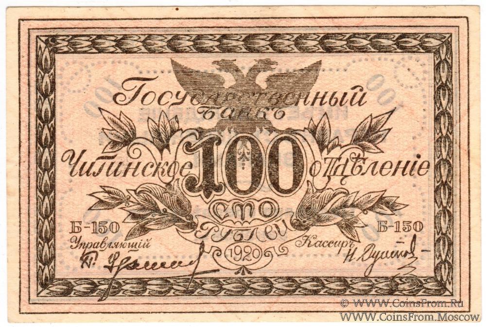 100 рублей 1920 г. - 2 экземпляра (Б-150, реверс: рамка из кубиков, бумага белая;