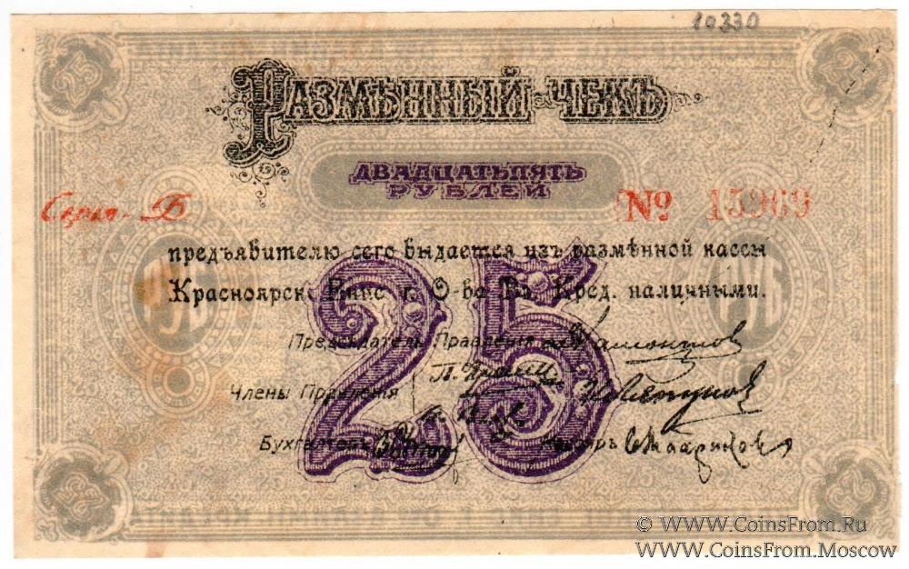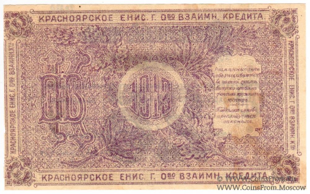 Серия Б. Разменный чек 1919 г. 3-й выпуск. Красноярское Общество Взаимного Кредита.