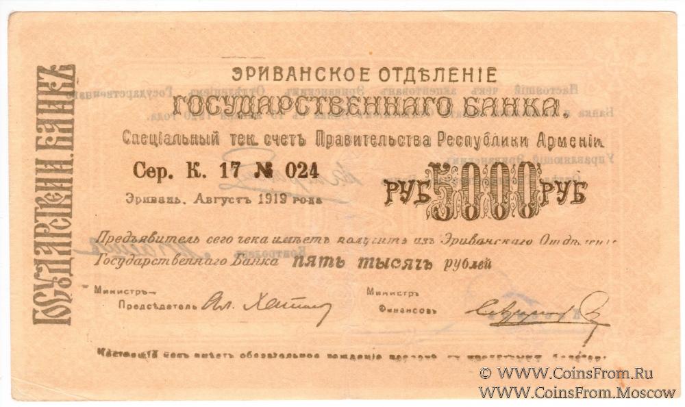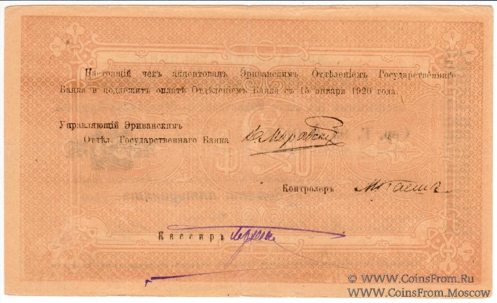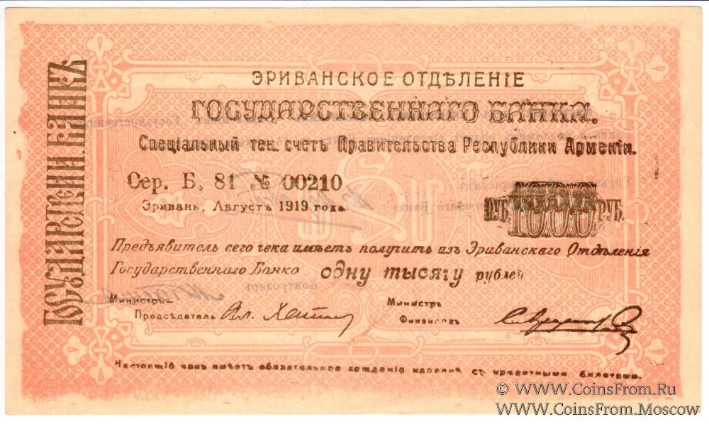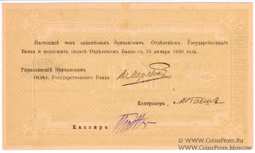 Комплект чеков Эриванского Отделения Государственного Банка. Август 1919 г. Срок 15.01.1920 г.