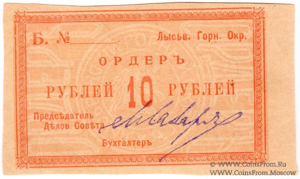 Ордер без даты 1918 г. Серия Б. Без номера. Подпись на аверсе. Бумага белая. Лысьвенский Горный Округ.