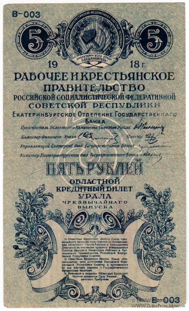 Областной кредитный билет Урала 1918 г. Серия В-003.