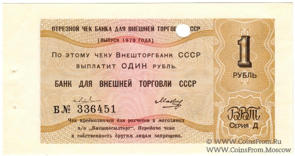 Отрезной чек 1 рубль 1979 г. Серия Д.