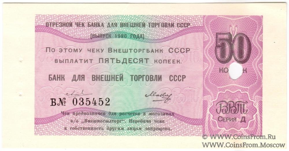 Отрезной чек 50 копеек 1980 г. Серия Д.