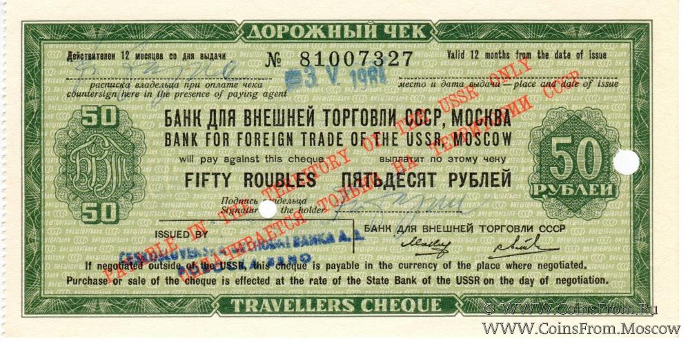 Дорожный чек 50 рублей 1984 г.