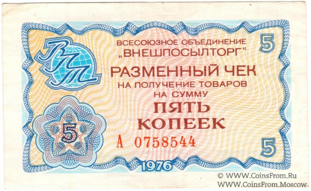 Выпуск 1976 г. Серия А. Разменный Чек на получение товаров. Водяной знак - "меандр".