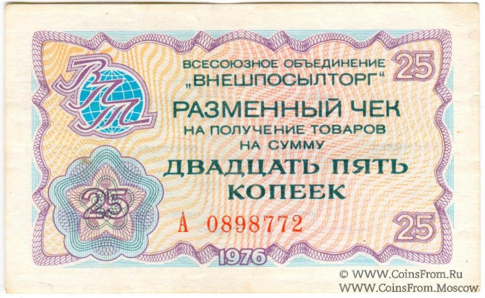 Разменный чек 25 копеек 1976 г.