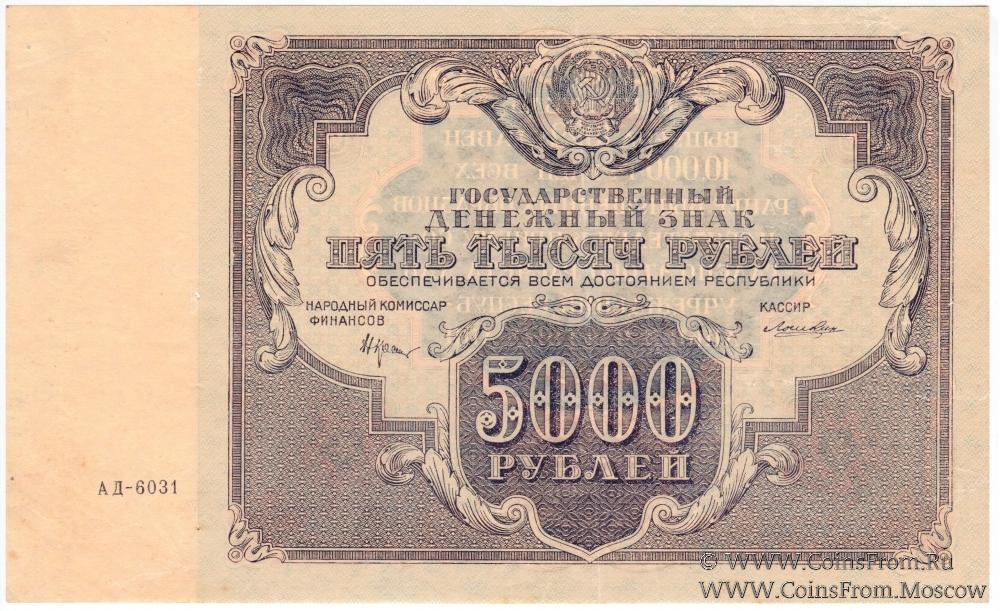 Государственный денежный знак РСФСР 5.000 рублей образца 1922 г.