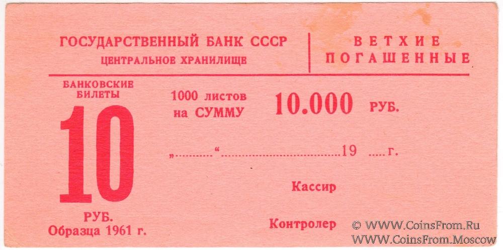 Накладка для банкнот 10 рублей 1961 г. "ВЕТХИЕ / ПОГАШЕННЫЕ"