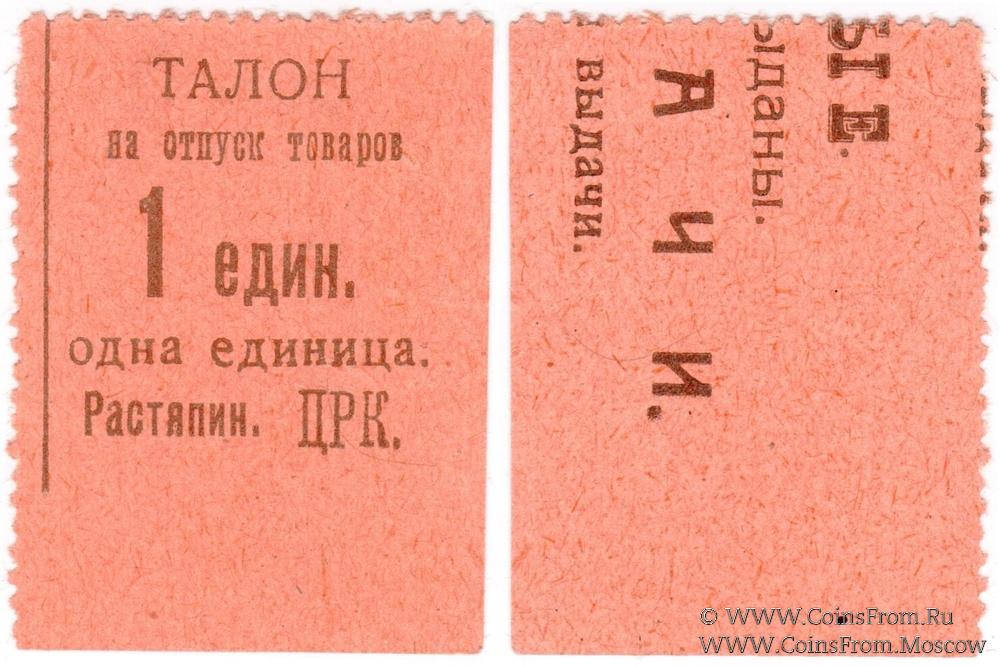 Талон на отпуск товаров без даты. Растяпинский ЦРК (Центральный Рабочий Кооператив).