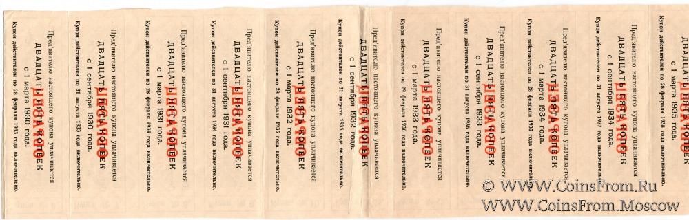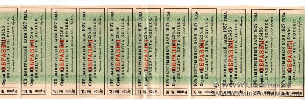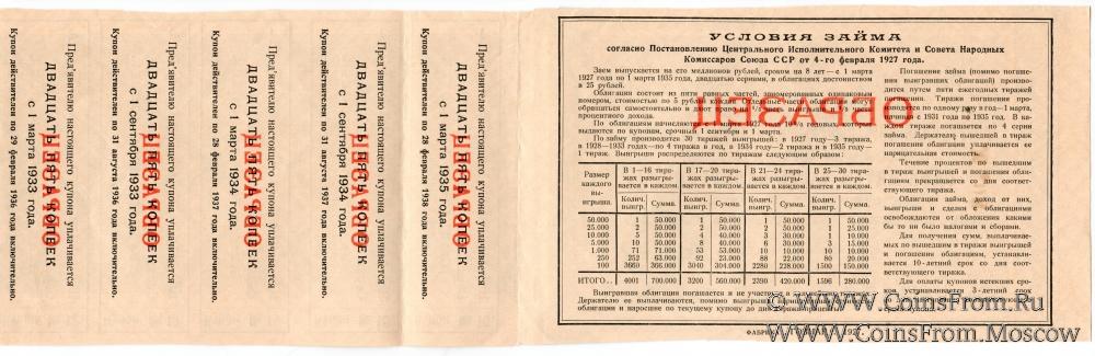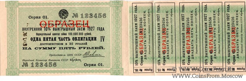 Одна пятая часть облигации на сумму 5 рублей 1927 г. (ОБРАЗЕЦ)